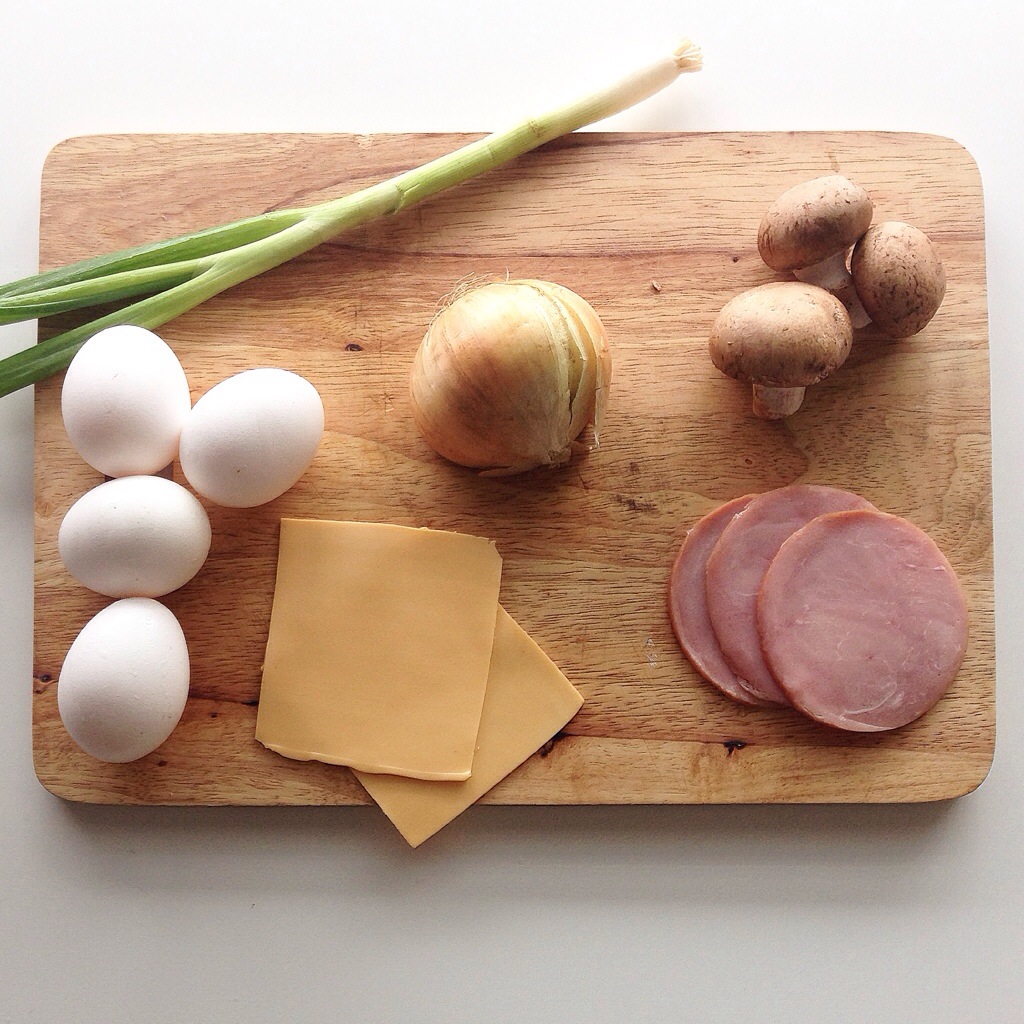 Whenever I go home, my dad will wake up on the weekends and make us a delicious, hearty breakfast of his own creation. I’ve named his scrambled omelette a “Scromelette”… Super delicious and very straightforward to make. Like a traditional omelette, you can make it with a variety of different ingredients. The only difference here is that it isn’t as technique-sensitive and you can make a whole bunch of it to feed many at a time. Today’s Scromelette had;