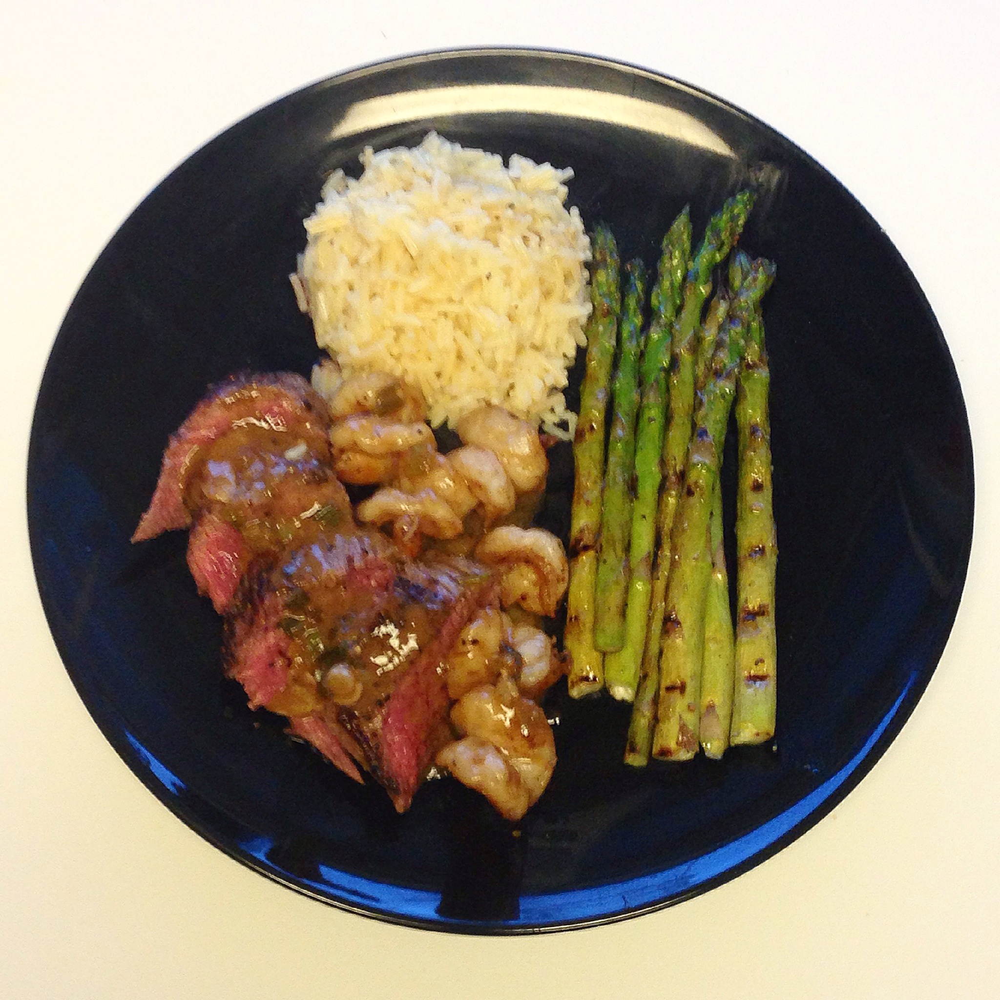The Grilled Asparagus how to is up on last night’s entry, and the herbed rice is from Knorr Rice Sides (pretty solid side dish)… The filet, shrimp, and super B0$$ pan sauce process is as follows: