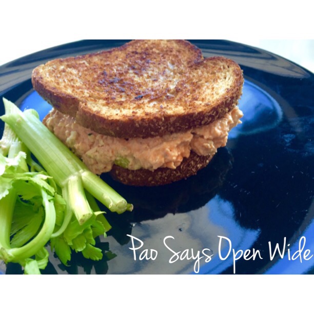 And then put the chicken salad on the bread- I like to toast up my bread first so I get a bit of a crunch in my sandwich!