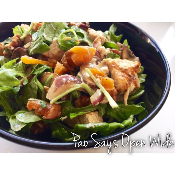 I can’t believe I’m saying this but the weather is finally starting to warm up… Spring has Sprung! In the spirit of warmer weather and wanting to attain those summer bikini bodies, I thought I’d post one of my favorite salad recipes. I like a lot of different textures and complementing flavors in my salads. Typically, I will have a green, a protein, a cheese, a nut, and a fruit component in my salads… Give or take some extras. And let’s not forget homemade dressing. Being able to control the flavors and balance of your dressing is a real game-changer.