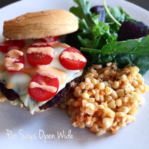 What better way to celebrate being an American than biting into a classic, juicy, melt-in-your-mouth burger? I won’t hold it against you if you’re at a loss for words… I’m pretty sure there’s no better way. I think this burger and “firecracker” corn make the perfect 4th of July meal. Some of our best friends, Mark and Mara and Jay, are coming down to visit us for this Independence Day! Needless to say, I’m pumped to feed them. They like things a little spicy, so I think the “special sauce” for my burger (secret ingredient: Sriracha Ketchup… YES, IT’S A THING), and the kick of heat in my firecracker corn (inspired by a spicy sauce my friend, Neij, and his family showed me) will be perfect to complement some ice cold brews while we watch fireworks from the roof ππ₯πβ¨ππΊπΈπΊπΈπΊπΈπΊπΈ