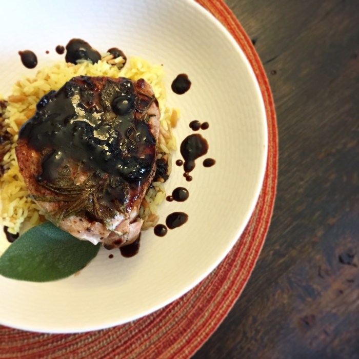 Combine and whisk together the balsamic vinegar and the apricot preserves in a small pot. Bring to a boil, and then reduce to a simmer. Cook until the sauce becomes thick and syrupy, and has reduced to about 1/2 of its original volume- about 15-20 minutes. You’ll know it’s ready when you dip a spoon in and the glaze sticks to the back of it. Thats it! Now just drizzle it over your pork chops and get ready to wow everyone… Yay Master Chef!!